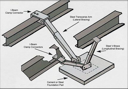 The lateral and longitudinal bracing and anchoring prided by the OTI V Braces effectively resists wind speeds in excess of 150 mph!